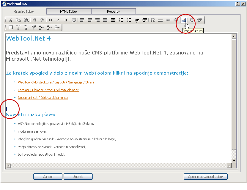 - Kliknemo na gumb za vstavljanje slike