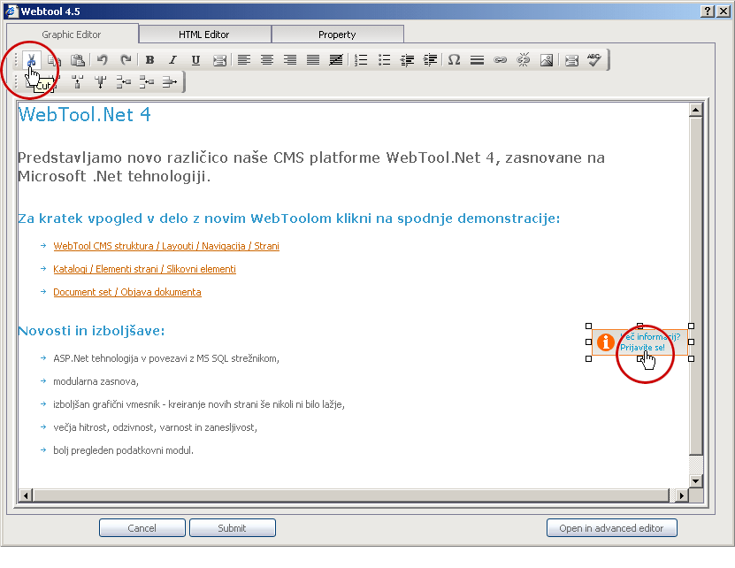 - Kliknemo na gumb izreži "Cut" ali na tipkovnici pritisnemo tipko izbriši <Delete>.