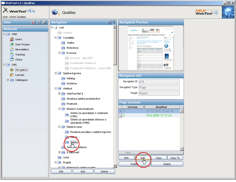 Potrdimo oz. spremenimo ime verzije strani (ime strani se izpisuje v nazivu okna Internetnega brskalnika).