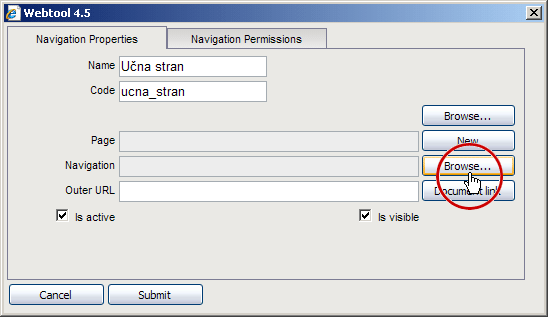 Izbira navigacije - "Navigation Browse"
