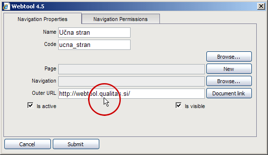 Zunanja povezava - "Outer URL"