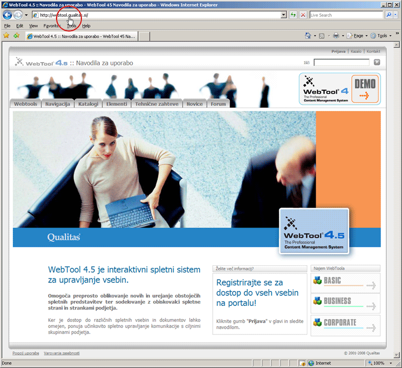Ko dodajmo mapo v navigacijo lahko določimo, do bo "kazala" - odpirala neko drugo spletno predstavitev - portal, ki je lahko kjerkoli in nima nič skupnega z našo spletno predstavitvijo. Takšna povezava se vedno odpre v novem oknu!
