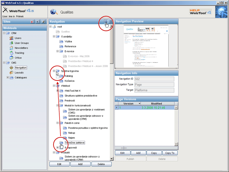 V navigaciji se postavimo na mapo, ki jo želimo premakniti po navigacijski strukturi