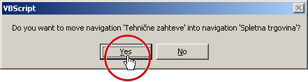 Potrdimo, da želimo navigacijo premakniti pod izbran navigacijsko mapo.